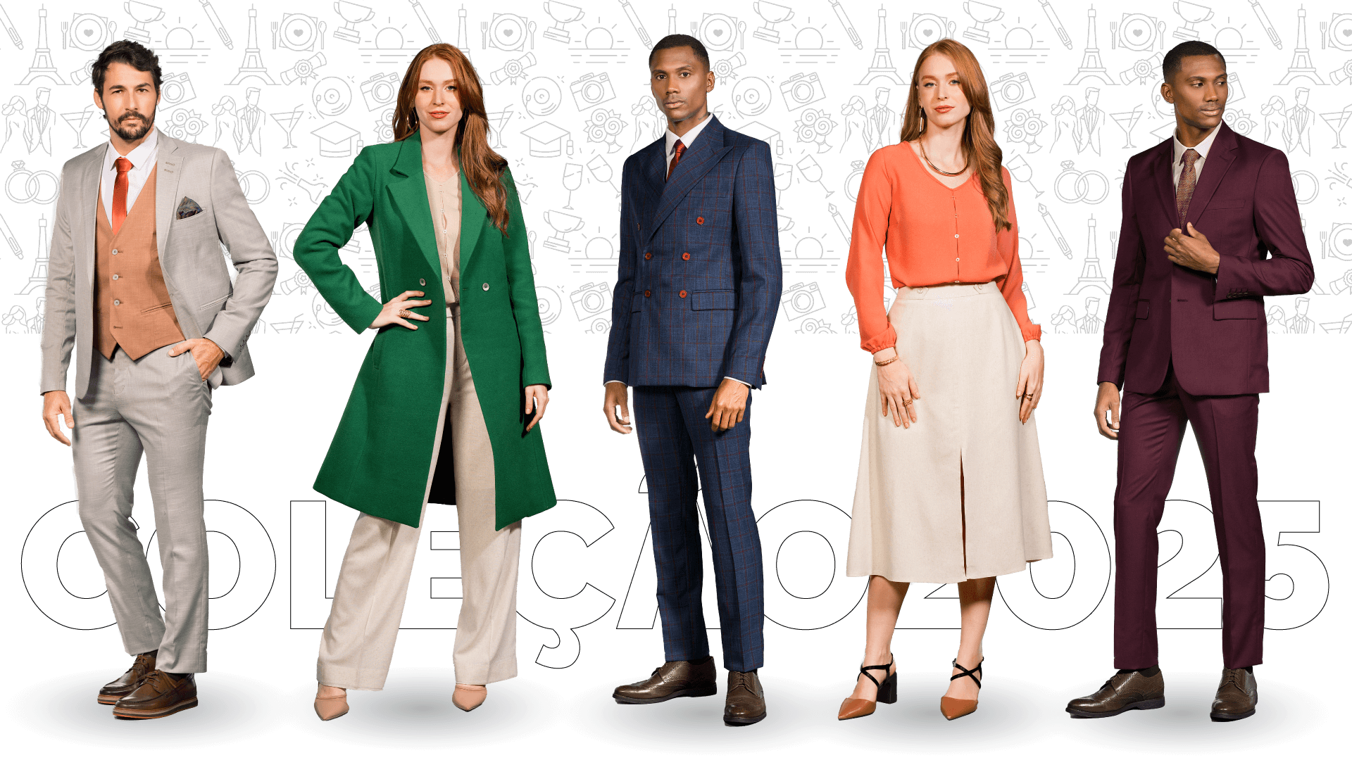 Tecidos com padrões modernos e confortáveis que proporcionam caimento perfeito e looks com design certo para cada momento, seja corporativo, formal, esporte ou de gala.